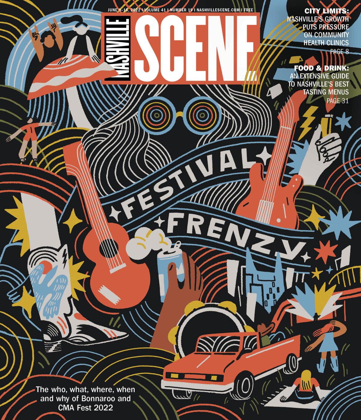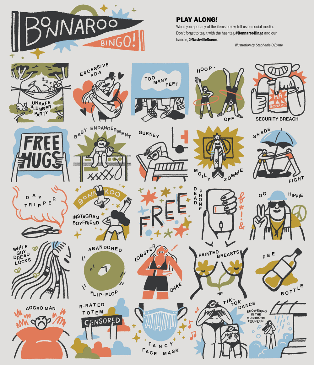 Nashville Scene “Festival Frenzy” cover and full page “Bonnaroo Bingo” illustrations, AD: Elizabeth Jones